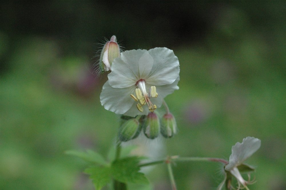 D. Evrard 2018: Ce geranium à de petites fleurs, mais très nombreuses, de 2 cm de diamètre, les pétales chevauchantes sont blanc-gris sur une plantes compacte de 40cm de haut.A noter une marbrure brune au sinus des feuilles, héritage de 'Samobor', ce qui est un atout supplémentaire pour ce beau phaeum. |